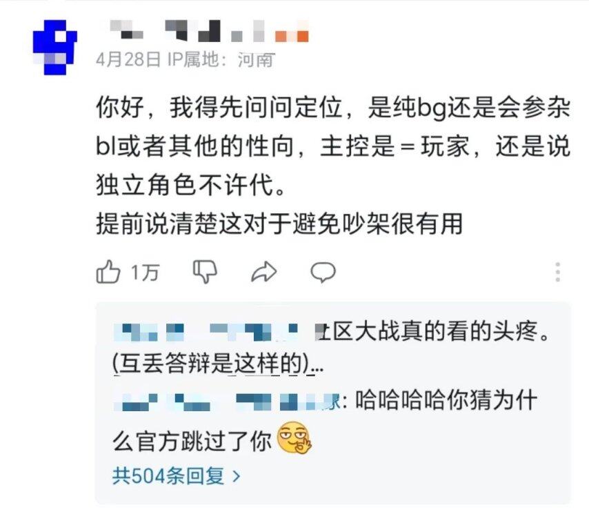 更尖锐的矛盾在于性向标签的模糊性。游戏刻意未限制角色互动方向(BG/GB/BL/GL/无CP),从首测玩家反馈来看,更像是试图以“ML(全员媚女主)”兼容多元XP,但却在社群引发诸多争议:有的玩家明确表示不想在女性向游戏中看到BL剧情,而有的玩家是包容度较高的“杂食党”。